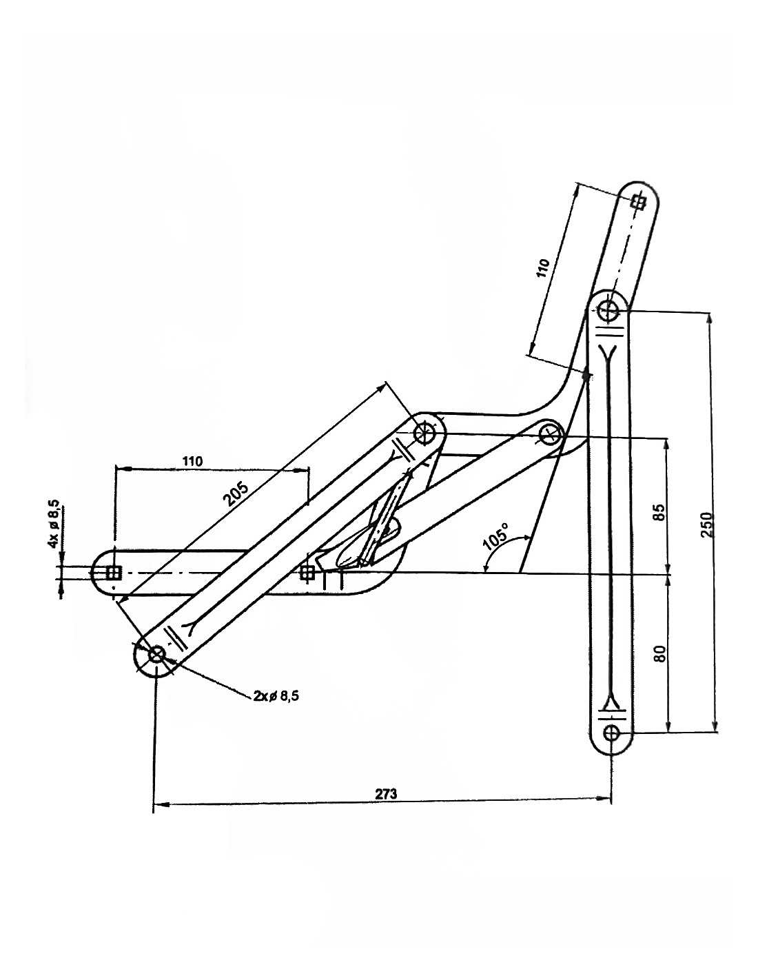 Curved arms 170-115, width: 25 mm, distance between holes: 110 mm
