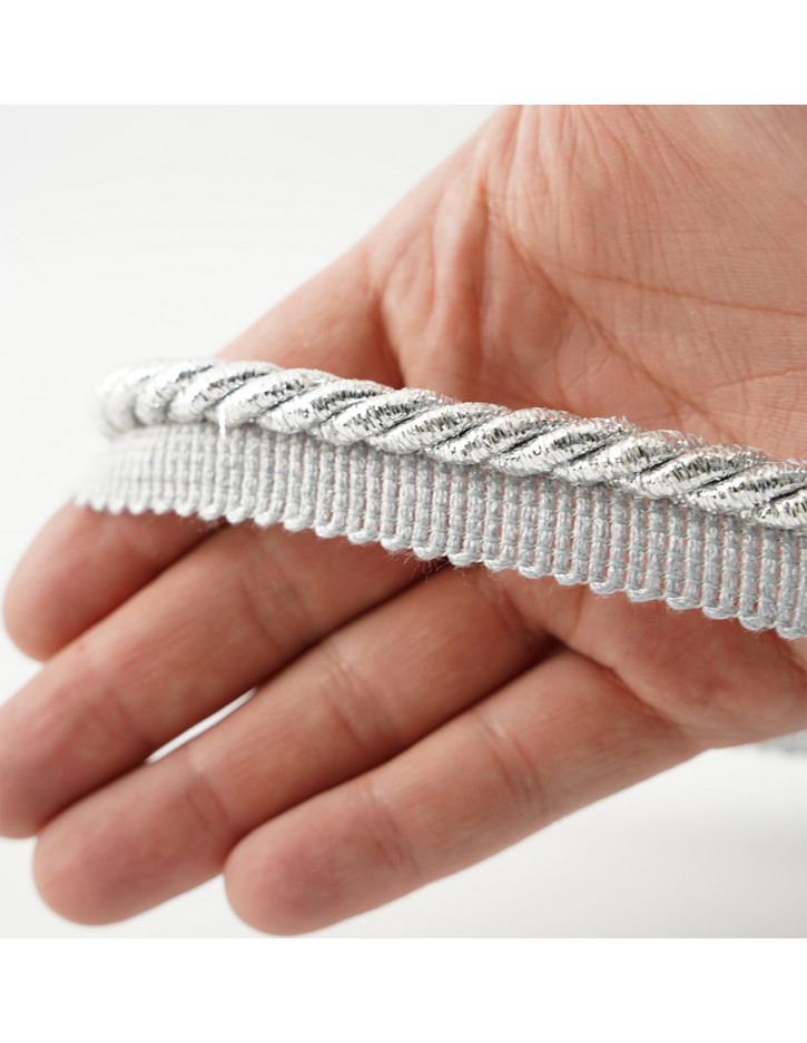 Decorative cord with piping 8 mm glitter silver KM12419