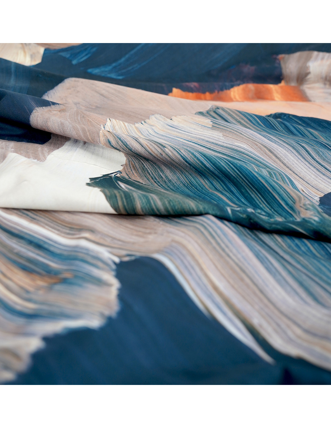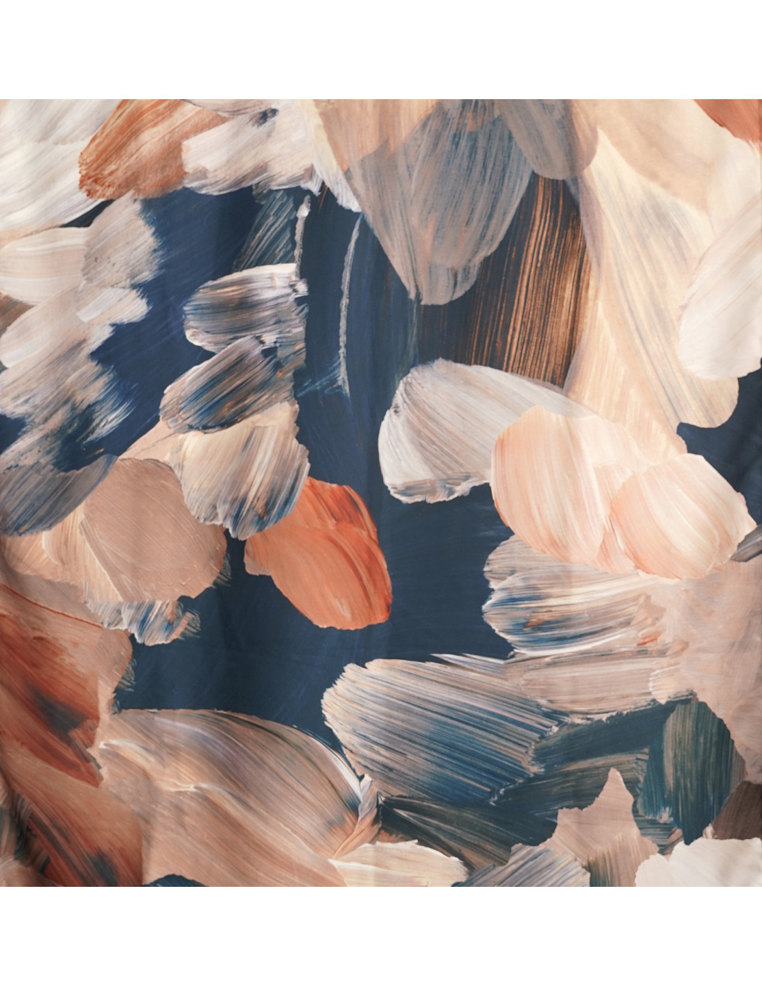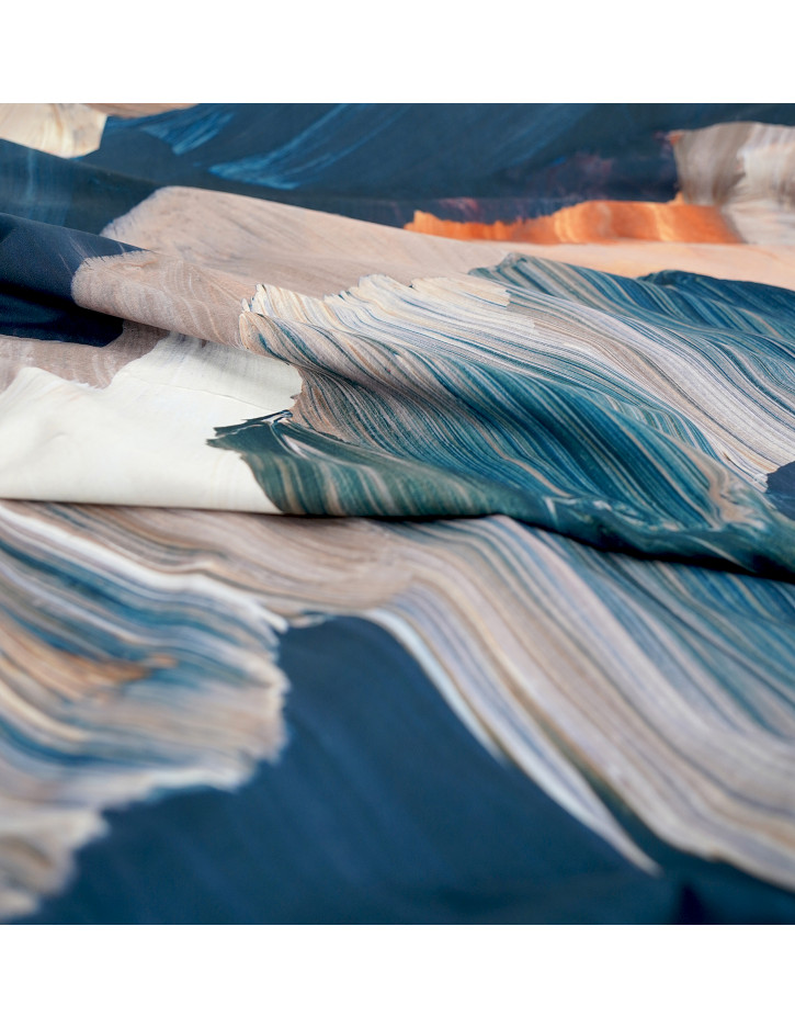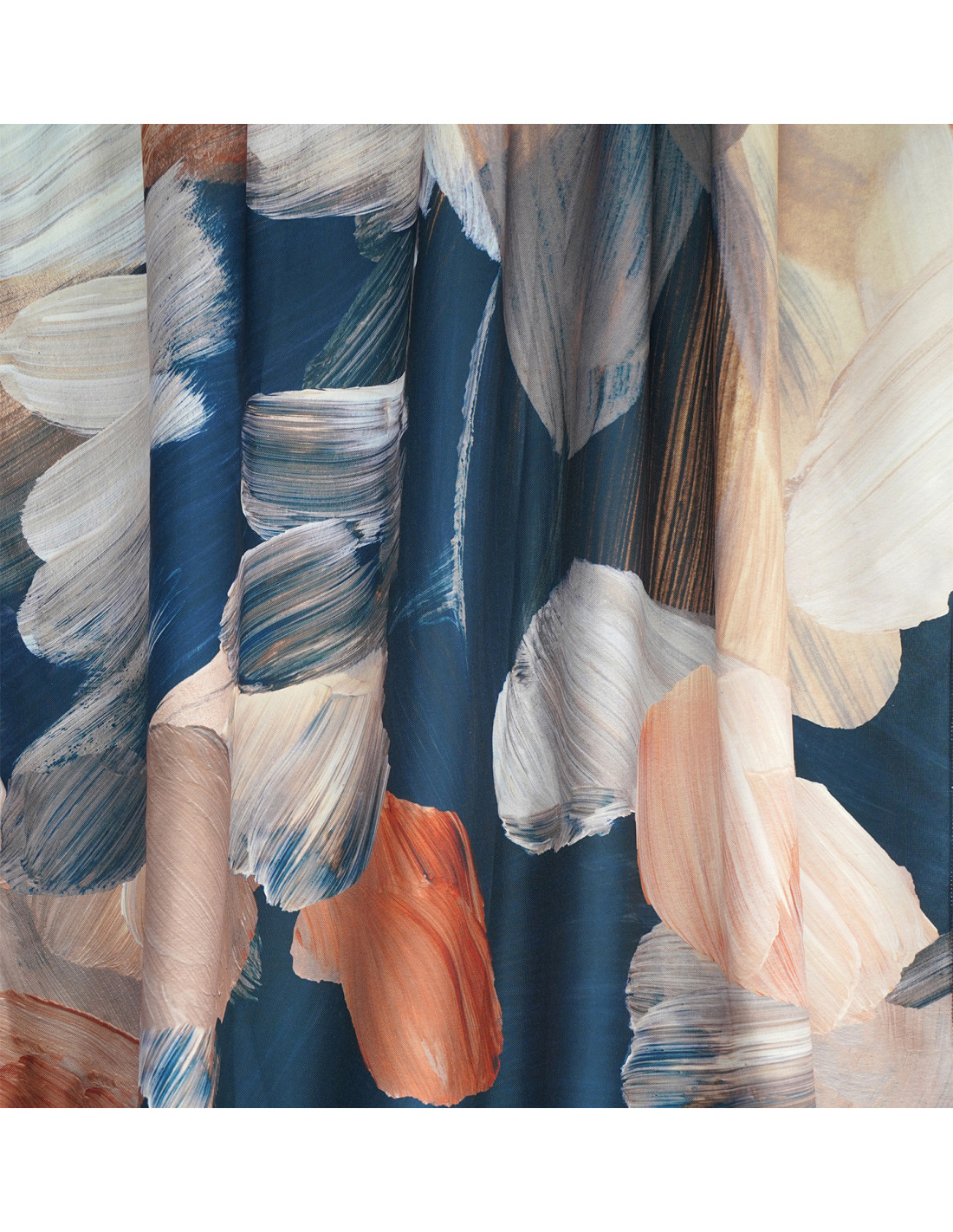 A darker alternative to fancy watercolor painted brushstrokes. Navy blue combined with brick orange and beige creates a pattern that will fancifully complement a modern living room or bedroom interior. DECOR curtain fabric is a novelty in our offer. The curtain fabric is distinguished by the possibility of washing, as well as ironing with a steam generator at a low temperature recommended by the manufacturer. The delicate, soft fabric, which you will perfectly arrange on the curtain rod, will make your interior in all its splendor look luxurious and individual. The new collection is characterized by the fact that the patterns you will find on the curtains are on the already well-known WONDER VELVET fabric, which is designed for upholstered furniture, as well as for sewing pillowcases. The fabrics come in a reduced pattern, so that when you buy a set you will put together a cohesive interior that will look luxurious and fancy.