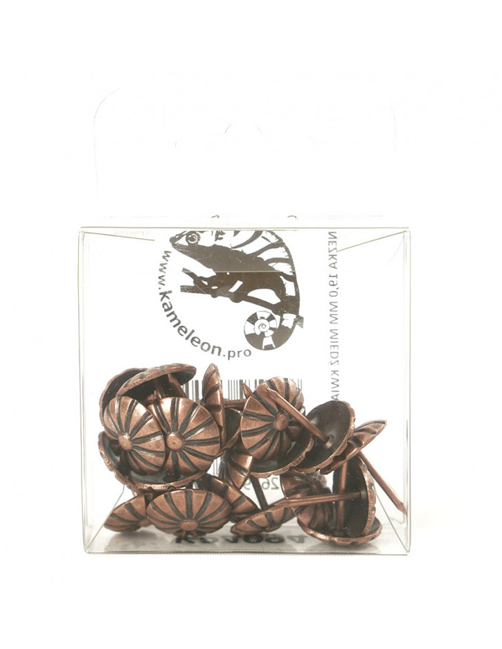 Pin 19.0 mm copper flower pack 20 pcs. KP4094 is a great decorative element used by upholsterers also for functional purposes. It allows you to fasten some elements of upholstered furniture and hide fasteners, e.g. staples. Thanks to the use of such pins, we can give a new character to our furniture.