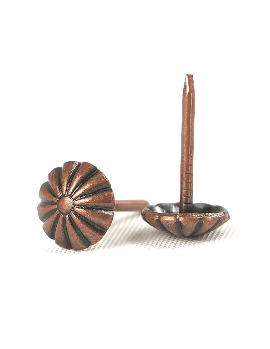 Pin 9.5 mm copper flower pack 100 pcs. KP4091 is a product that gives the possibility of decorating furniture and decorative objects. The durability of the product is ensured by the use of high-quality metal. The product is subjected to galvanization processes, and the resulting coating has a durable color and high quality. This upholstery nail is able to transform your upholstered piece of furniture.