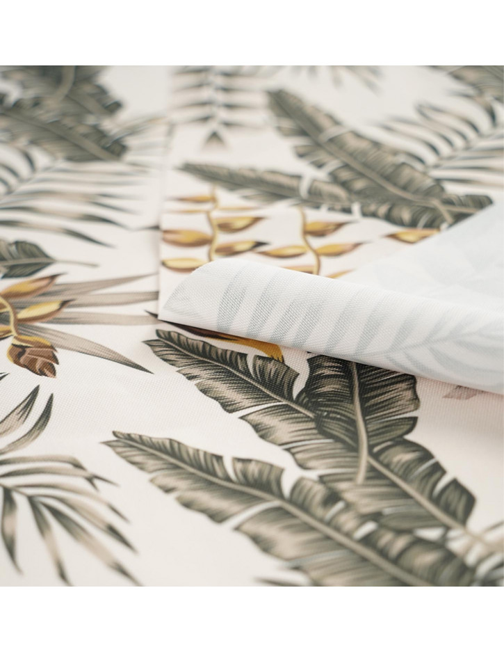 EXOTIC LEAVES 01 pattern is a perfect fabric for all those who like delicate patterns, beiges and BOHO interiors. Now you can bring your favorite motifs to your garden, or terrace. The garden fabric is waterproof and has been adapted to all weather conditions. The material is characterized by high quality and many functional properties. The fabric is waterproof, so it will cope well not only with rain, but also the fabric has a high resistance to staining with seawater and chlorinated water. A multi-purpose material, it will be perfect for garden furniture, cushion upholstery, curtains, screens, canopies, yacht upholstery, deck chairs, or garden tablecloths.