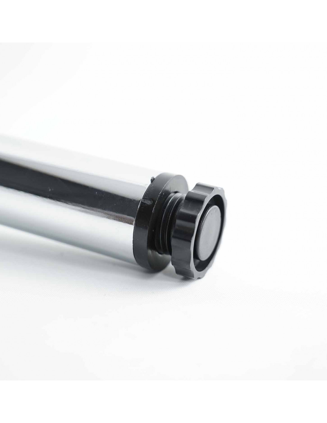 Noga meblowa o eleganckim, minimalistycznym designie. Okrągła o średnicy 3 cm, i wysokości 7.5 cm, wykonana z wysokiej jakości stali, wykończonej w kolorze chromu, co nadaje jej nowoczesny, błyszczący wygląd. Dzięki solidnej konstrukcji i starannemu wykończeniu idealnie sprawdzi się w różnego rodzaju meblach, takich jak sofy, fotele, czy pufy, zapewniając im stabilne podparcie, oraz atrakcyjny wygląd.