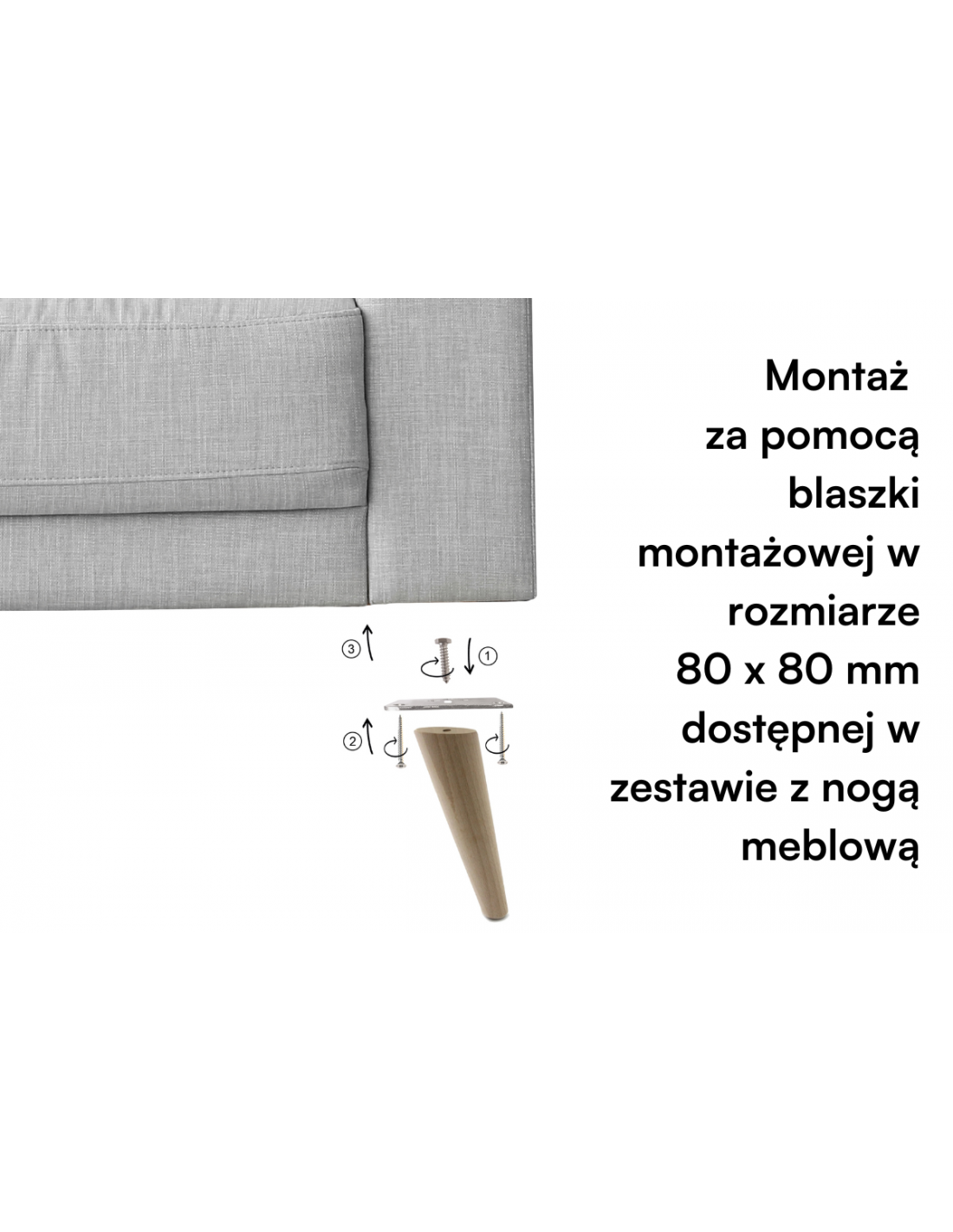 Noga meblowa skośna o całkowitej wysokości 220 mm to świetny dodatek do mebli tapicerowanych - foteli, kanap, puf i kanap. Noga meblowa wykonana została z wysokiej jakości drewna bukowego. Noga surowa, gotowa do montażu, bądź wybarwienia bejcą lub lakierem na dowolny kolor. Montaż możliwy za pomocą blaszki o wymiarach 80 x 80 mm. (Blaszka do montażu w zestawie z nogą meblową)