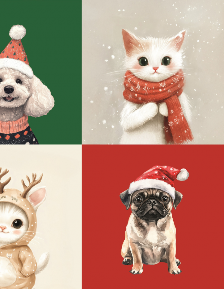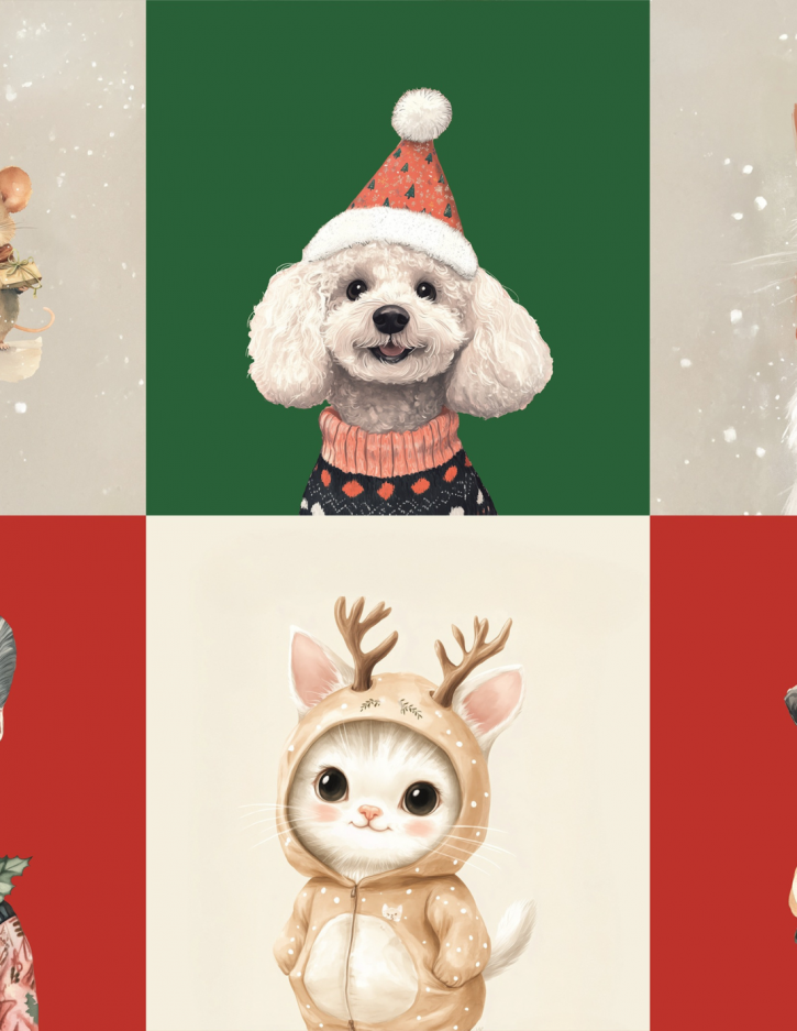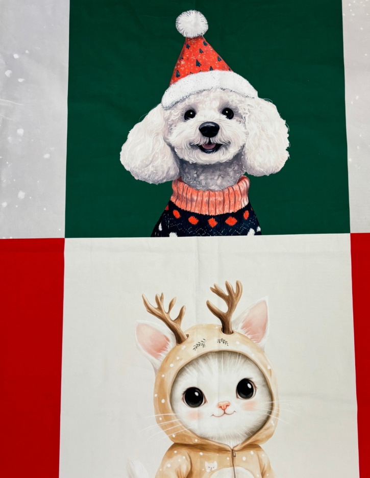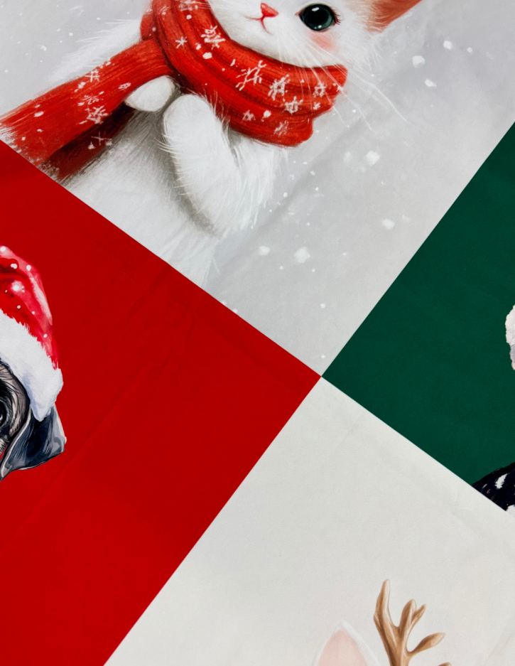 Zakochaj się w świątecznym uroku panelu poduszkowego Merry Christmas 03! Ten wyjątkowy wzór zachwyca pełnymi ciepła, zimowymi ilustracjami zwierząt w świątecznych stylizacjach – urocze kotki, psy, reniferek i myszki wnoszą do wnętrza mnóstwo radości i świątecznej energii. Idealny wybór dla miłośników zwierząt i przytulnych, bajkowych dekoracji. Z jednego metra bieżącego tkaniny uszyjesz aż 6 różnych, wyróżniających się poduszek. Tkanina perfekcyjnie współgra z zimowym szaleństwem.