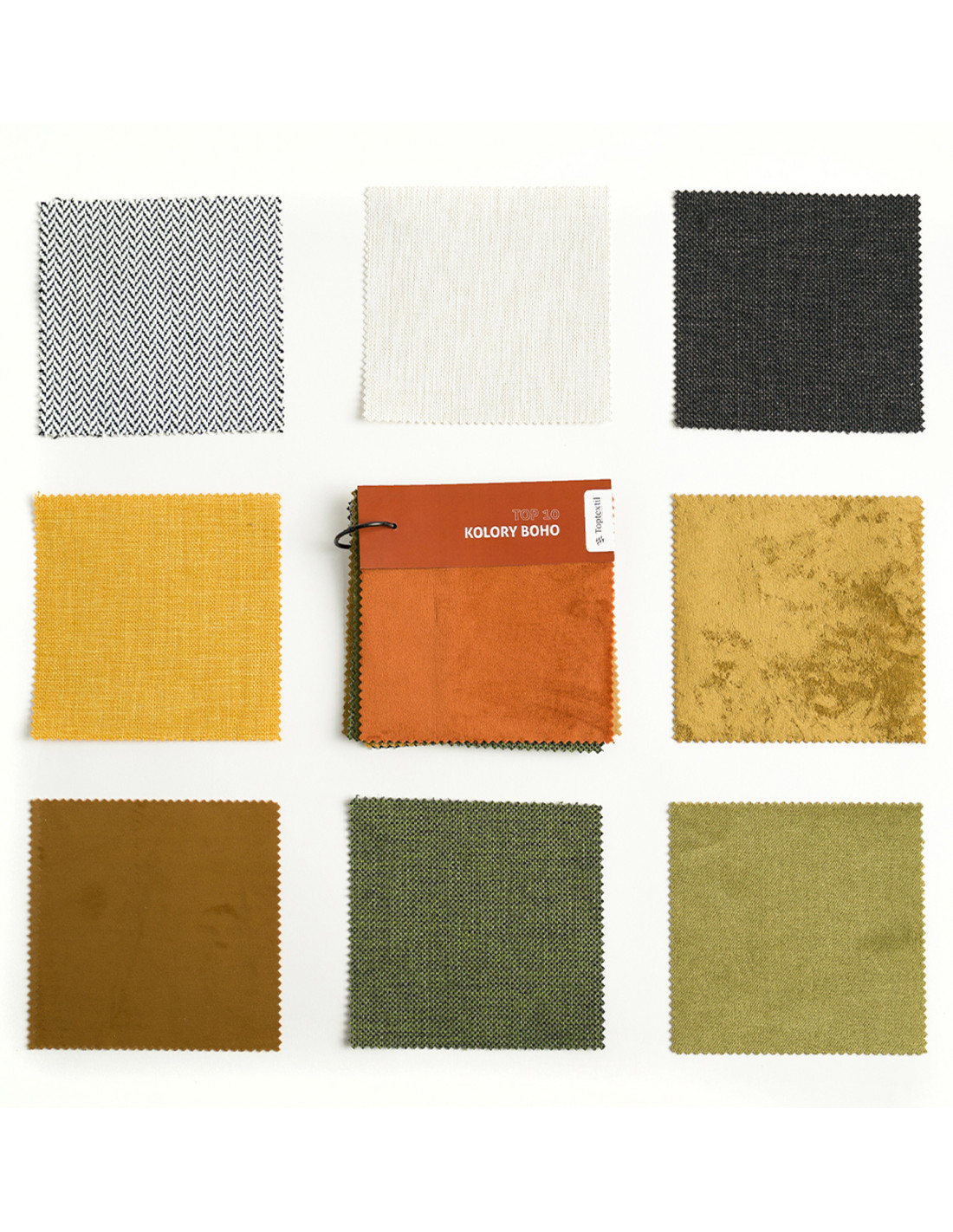 Zestaw próbek TOP10 boho został stworzony przez firmę Toptextil. Zestaw został przemyślany i wybrane są w nim najlepsze tkaniny w odcieniach boho. W skład zestawu wchodzą próbki tkanin o wymiarach 15x15 cm (większe o 5 cm od standardowych próbek).